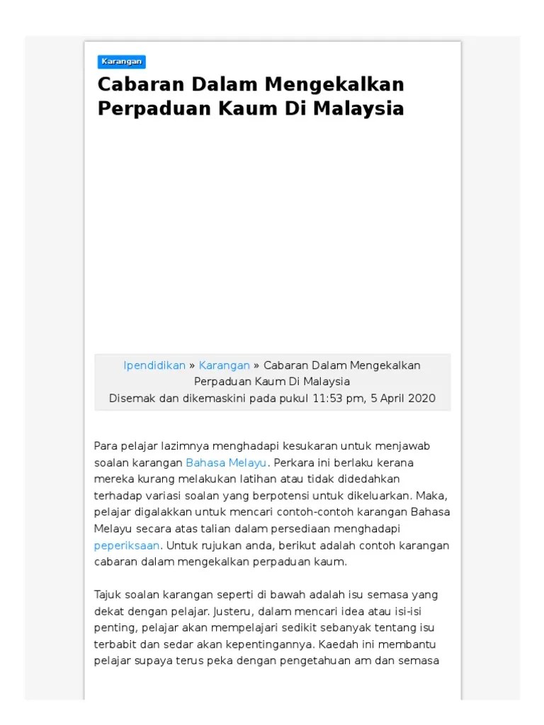 Cabaran cabaran dalam mengeratkan hubungan etnik. Nota pismp ks sejarah masalah cabaran perpaduan kaum cabaran mengekalkan perpaduan kaum. Contoh karangan masalah yang dihadapi di dalam membina perpaduan masyarakat berbilang kaum di malaysia:. Sistem pendidikan di malaysia (anuar, 2020).